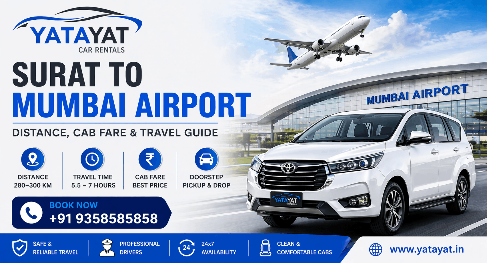 Whether you need a Surat to Mumbai Airport one way cab or a round trip, Yatayat Car Rental offers flexible and budget-friendly options.